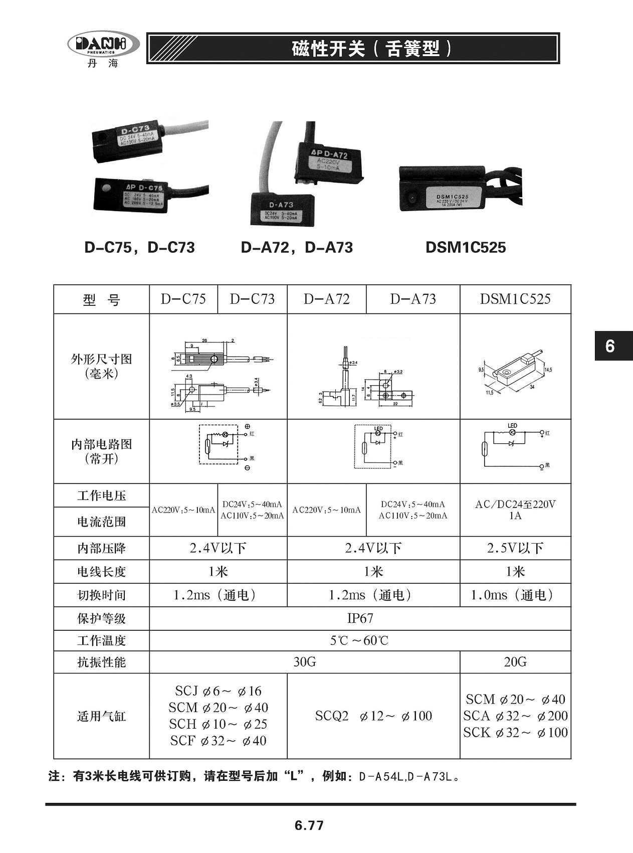 韩国DANHI丹海?2?7簧型磁性开关,气缸限位开关,行程开关,接近开关,感应开关,气缸磁环开关,磁性开关感应器,磁控接近传感器,气缸磁性感应器,磁性感应开关,感应传感器,气缸限位器,气缸感应器,气缸传感器,气缸感应线,气缸磁环感应线,接近传感器,磁力开关,气缸信号传感器:D-C75,D-C73,D-A72,D-A73,DSM1C525。