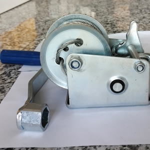手摇绞盘以人手纵向或者圆周运动为驱动力的绞盘。它最大的优点就是可以便携,可以从车上的任何方向连接。轻便和牢固,电镀,压制钢结构,钢缆通过两个内定的叉头滑轮推进的单元。这些叉头在绞盘向前模式的时候拉动钢缆线,同时也是一个自动的刹车系统。叉头在抓力增加的时候会自动锁住。手摇绞盘还能够用于提升(提升力为拖拉力的65%左右)